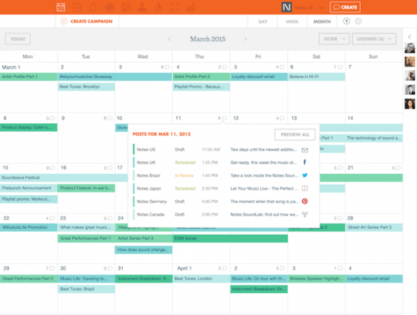 Un esempio di planning con una soluzione di Content Marketing Platform, fonte https://transmediacapital.com/