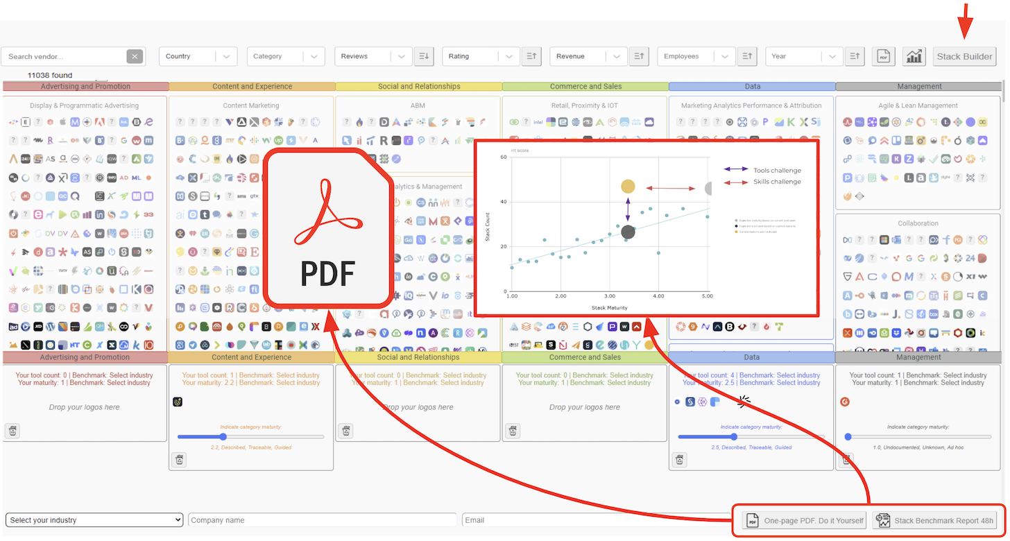 Già a dicembre però per rendere più fruibile e navigabile questa notevole mole di informazioni era stato reso disponibile martechmap.com, rivisto per diventare una versione interattiva del panorama martech, che consente di cercare e filtrare utilizzando i dati di Clearbit (fatturato approssimativo, dimensioni dell’azienda e data di fondazione) e G2 (valutazione media e numero di recensioni).