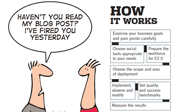 Si sente parlare sempre più spesso di Enterprise 2.0, ossia quello che Wikipedia definisce un insieme di approcci organizzativi e tecnologici orientati all’abilitazione di nuovi modelli organizzativi basati sul coinvolgimento diffuso, la collaborazione emergente, la condivisione della conoscenza e lo sviluppo e valorizzazione di reti sociali interne ed esterne all’organizzazione.